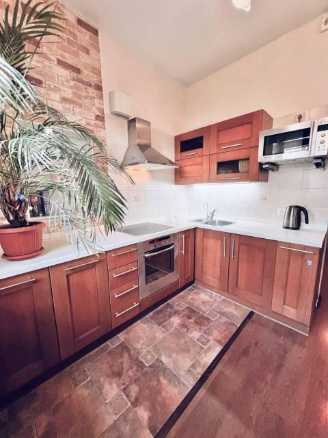 1 . Кухня, полностью оборудованная под нужды современного человека, а именно: стеклокерамическая плита, духовой шкаф, вытяжка, микроволновая печь, холодильник, чайник, полный набор посуды и столовых приборов. Также для Вас установлены фильтры очистки воды, поэтому питьевая вода здесь без ограничений.