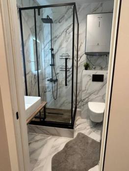 ( вода подаётся уже нужной температуры), гигиенический душ. Пластиковые окна. Софиты. Стены выровнены. Тёплый пол. Декоративная штукатурка в гостиной, гардеробной и на лоджии,