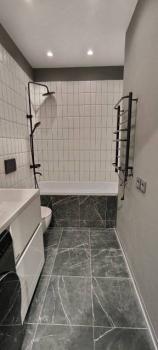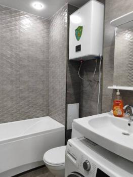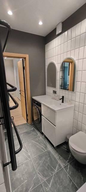 Особенности: Гардеробная, Ламинат, Межкомнатные двери, Натяжной потолок, Пластиковые окна, Софиты, Стены выровнены, Тёплый пол в ванной комнате.