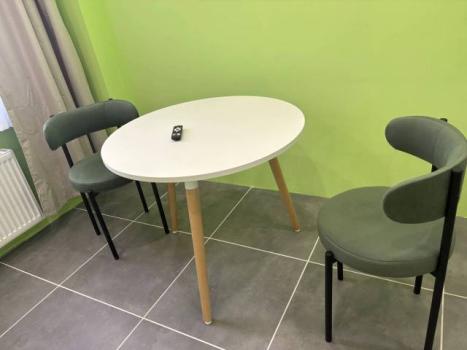 Мебель: Двуспальная кровать, Диван, Кухонный гарнитур, Обеденный стол,, Журнальный столик, 2 стула
