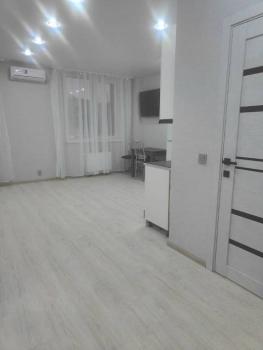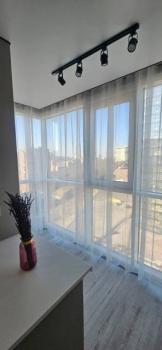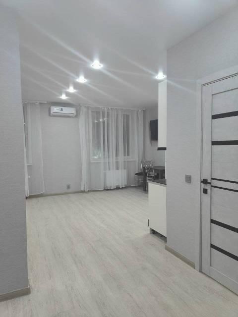 Железная дверь, Ламинат, Натяжной потолок, Пластиковые окна, Софиты, Стены выровнены, Тёплый пол по всей квартире, витражные окна в пол, красивый вид из окна. В квартире есть все условия для шикарного проживания.
