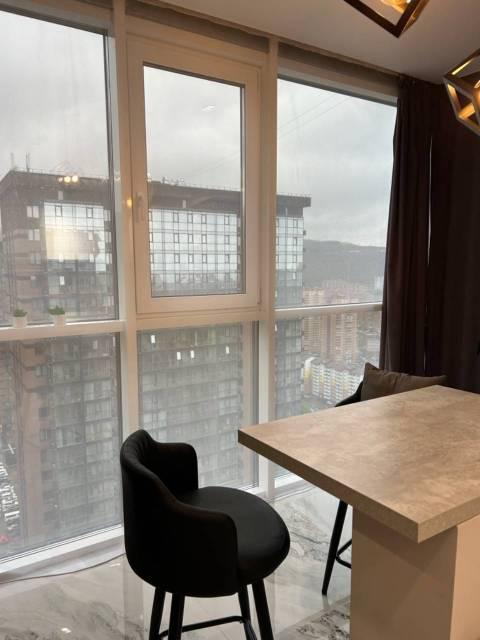 Требования: Квартира соответствует фото. Чистая, ухоженная, в новом доме. Три лифта (один грузовой и два пассажирских). Площадь с балконом 26кв.м., панорамные витражи. Есть все для комфортного проживания. Много свободных парковочных мест, минимаркет на 1 этаже дома, удобная транспортная развязка, сразу выезд на объездную трассу. Развитый район, есть все необходимое в самом ЖК (много продуктовых магазинов, барбер шоп, WB, OZON, маникюр, массаж, доставка пиццы, роллов, кофейня, цветочный, аптеки, пиво и т.д). В квартире есть кондиционер, теплые полы на лоджии и в санузле, интернет, ТВ, бойлер. Спальных мест два, с животными оговаривается отдельно (смотря какие животные и сколько)
