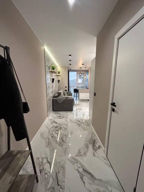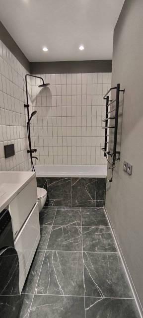 В квартире никто не жил. Сделан качественный дизайнерский ремонт. Большая гардеробная комната. Теплые полы в ванной комнате и на балконе.
