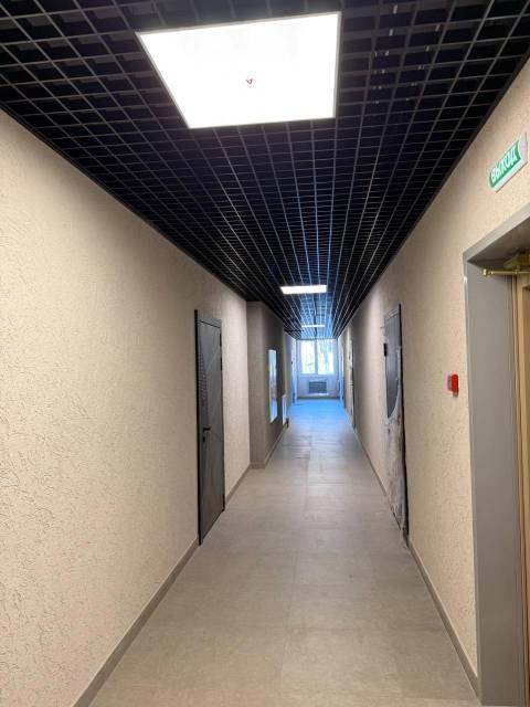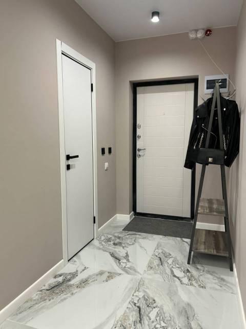 Гардеробная, Железная дверь, Ламинат, Межкомнатные двери, Натяжной потолок, Пластиковые окна, Софиты, Стены выровнены, Тёплый пол