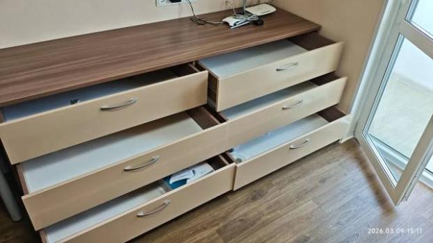 Мебель: Диван - кровать, Кухонный гарнитур, Обеденный стол со стульями, Шкаф-купе, встроенный шкаф, комод,