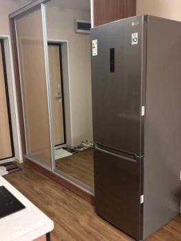 Особенности: В квартире прихожая, кухонный стол со стульями, стенка под тв, тумбочки, кровать, диван. Стиральная машина, холодильник и микроволновая печь также имеется. Всё есть для комфортного проживания. В спальне двухспальная кровать 160*200