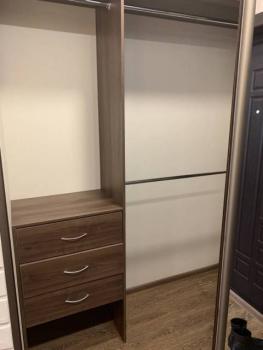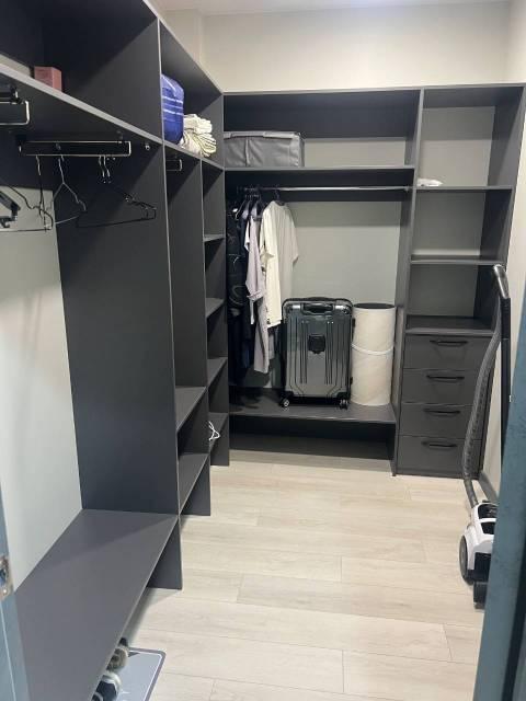 Особенности: Гардеробная, Железная дверь, Ламинат, Межкомнатные двери, Натяжной потолок, Пластиковые окна, Софиты, Стены выровнены, Тёплый пол