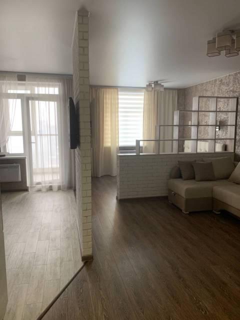 Сдаётся стильная, светлая квартира с качественным ремонтом, отдельной спальней и огромными панорамными окнами на 6 этаже.