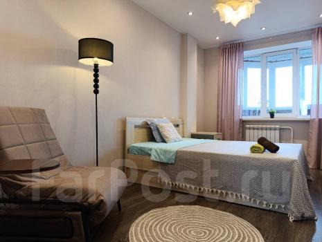 Особенности: Сдам просторную и светлую двухкомнатную квартиру в новом доме. 64 кв. м. В квартире сделан свежий ремонт, имеется всё для комфортного проживания: детская площадка, продуктовый магазин рядом с домом, с парковкой проблем не возникает, вид из окон на Русский мост,в шаговой доступности морской пляж МГУ Невельского, Маяк, видеонаблюдение на придомовой территории. Квартира грамотно спланирована, разделена на спальню и кухню, меблирована, оснащена новой техникой.