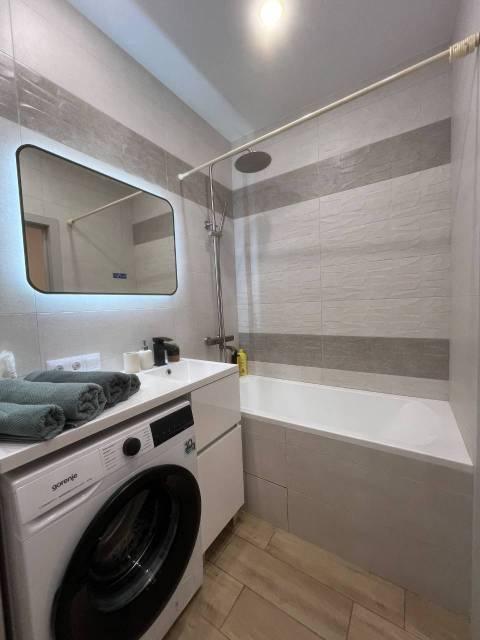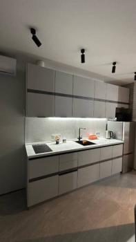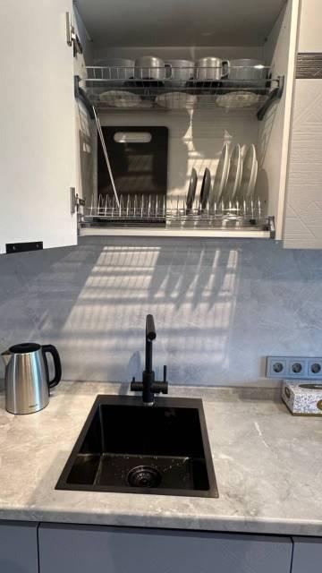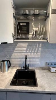 - Кухня-гостиная с удобным диваном-кроватью, кондиционером, полноценная кухня со всей бытовой техникой и посудой, большой холодильник и стиральная машинка с сушкой, утюг и гладильная доска, электронный и складной полотенцесушитель, вместительный шкаф в прихожей и различные варианты освещения, кабельное тв и скоростной wifi.