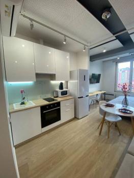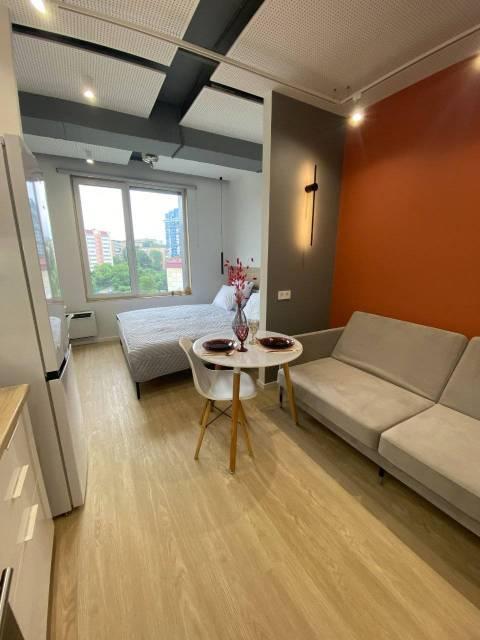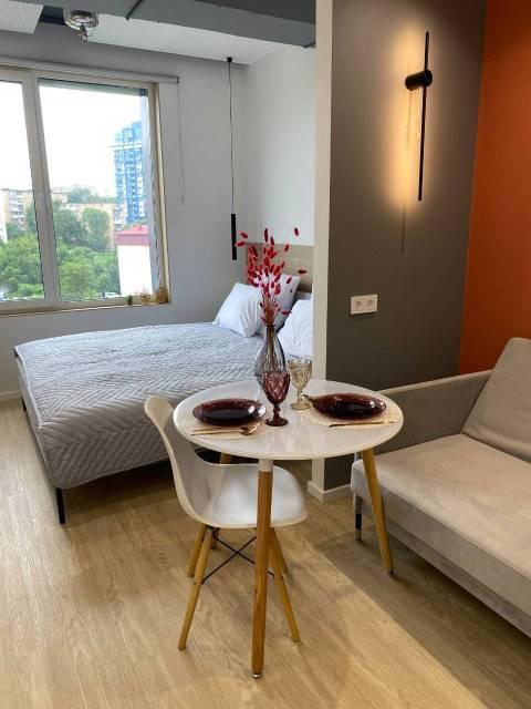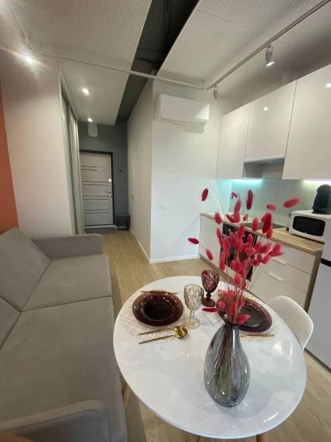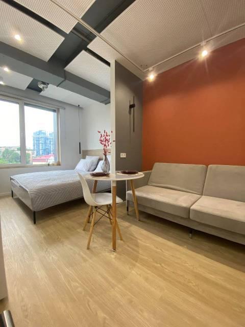 Особенности: Дизайнерская студия бизнес- класса с видом на город на 12 этаже в новом 15-этажном жк .