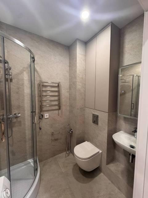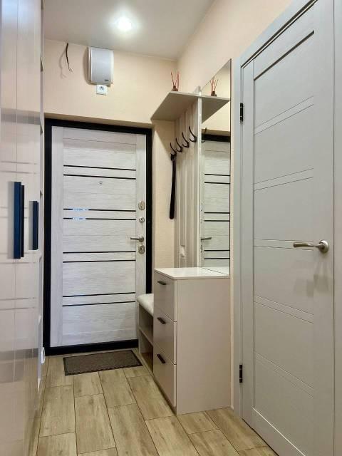 Особенности: Железная дверь, Ламинат, Натяжной потолок, Пластиковые окна, Софиты, Тёплый пол, Стены выровнены.