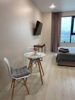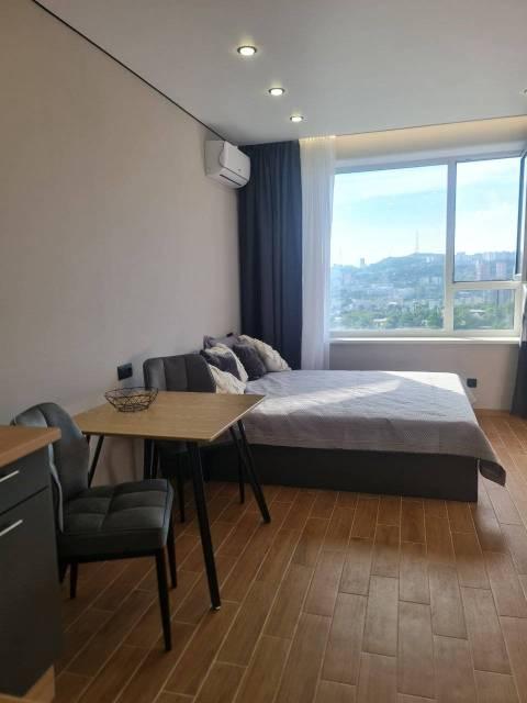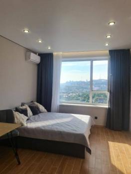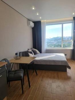 Особенности: Предлагается к аренде прекрасная студия с шикарным видом на город и бухту.,ПРОСЬБА К АГЕНТСТВАМ - НЕ БЕСПОКОИТЬ!!!!! Линолеум, Натяжной потолок,, Софиты, Стены выровнены, Тёплый пол