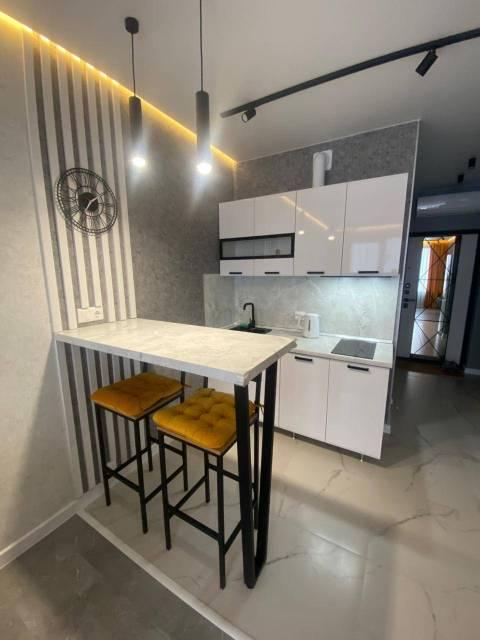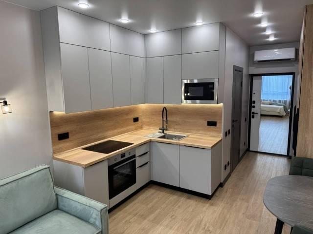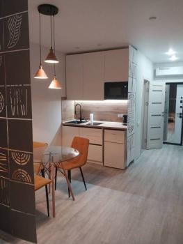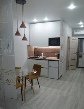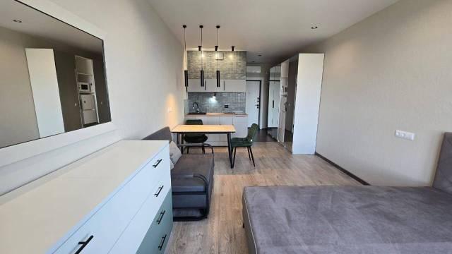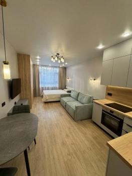 Особенности: Предлагаем уютную и теплую студию в районе с хорошо развитой инфраструктурой. Квартира-студия в новом ЖК Атмосфера .Сделан новый ремонт, со всем наполнением в сдержанном цветовом решении, что добавляет ощущение пространства и стиля. Квартира полностью готова для заселения и проживания (в квартире никто не жил).