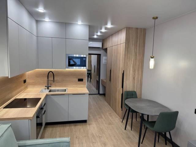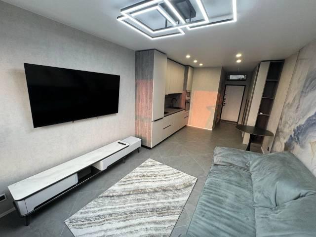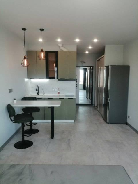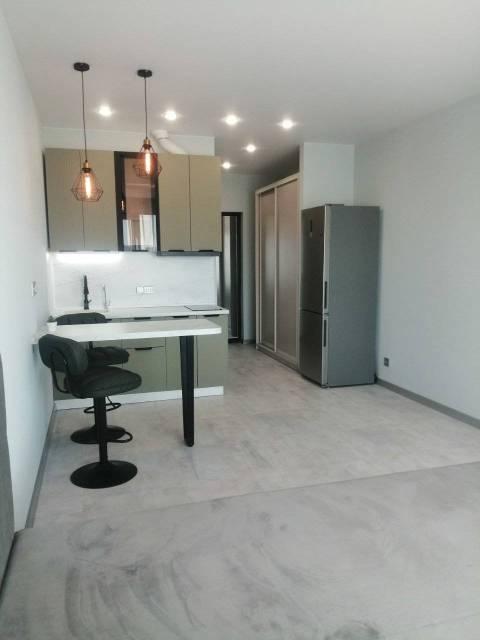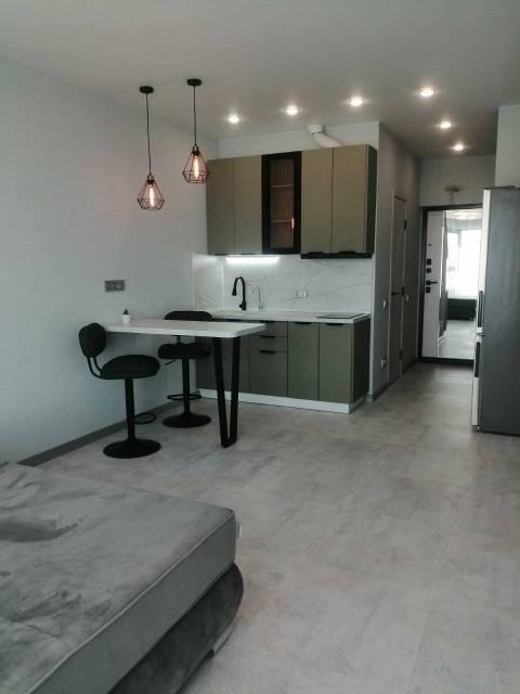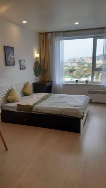 Особенности: Новая, современная 1-комнатная студия, только после ремонта. Дизайнерский проект со множеством точек подсветки, создаёт ощущение уюта и комфорта. Из витражного окна открывается потрясающий вид на бухту Золотой рог и Золотой мост. Три зоны тёплого пола (санузел, прихожая-кухня, жилая комната). Квартира может быть сдана с индивидуальным парковочным местом в крытом паркинге № 1, который имеет два выезда (на ул. Стрелковую, и на ул. Воропаева), в таком случае стоимость аренды составит + 5 000 рублей (50 000 рублей). В квартире железная дверь с хорошей шумо-теплоизоляцией (тремя контурами уплотнения). На полу уложен кафель и кварцвиниловый ламинат. Натяжной "парящий" потолок с подсветкой по периметру, Софиты, Трекинговые светильтники, Стены выровнены.