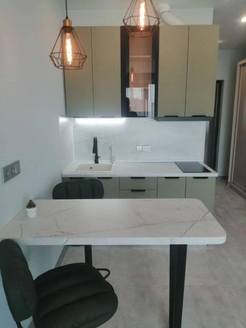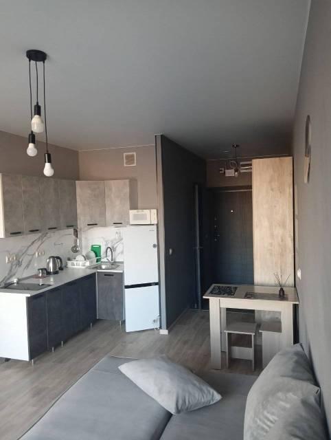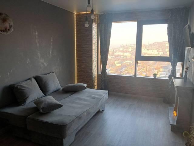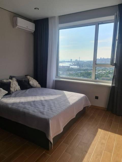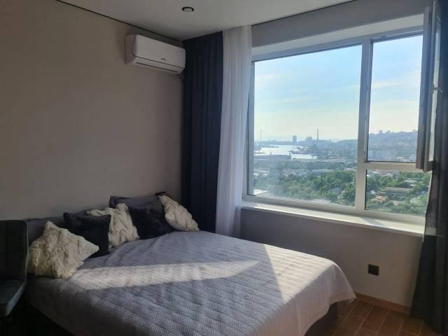 Особенности: Уютная студия с современным ремонтом в светлых тонах. Панорамные окна. На полу керамогранит, 3 зоны тёплых полов по всей площади квартиры. Вся мебель и техника в наличии. Окна выходят на Золотой Рог - шикарные закаты гарантированы.