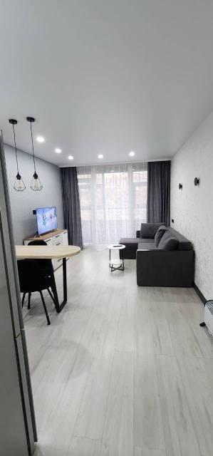 Особенности: Общая площадь после перепланировки (совмещение с балконом) - 28,6 кв.м. 4 спальных места! Интернет 5G. Много мест для хранения. Теплый пол. Теплая стена. Все новое. Очень уютная! Новостройка, иногда до 18 шумят.