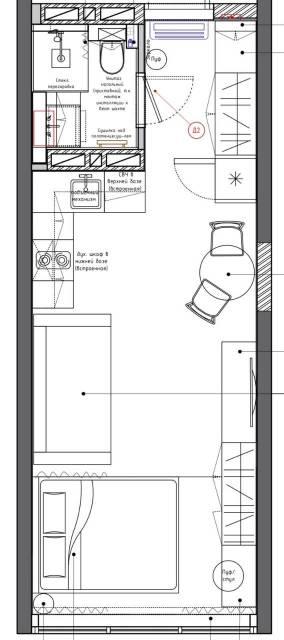 Удачная планировка с зонированием позволяет эргономично разделить пространство, либо же отделить два спальных места, например для родителей и для ребенка. Поэтому квартира идеально подойдет как для одного человека или молодой пары, так и для семьи с ребенком.