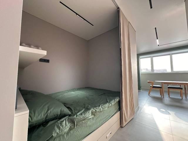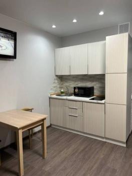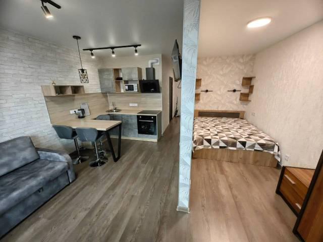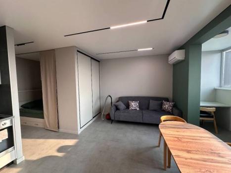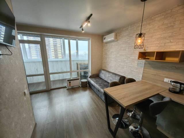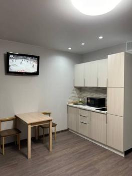Особенности: Студия с отдельной спальней. Общая площадь 40м2. Новый ремонт. Внесение залога обязательно.