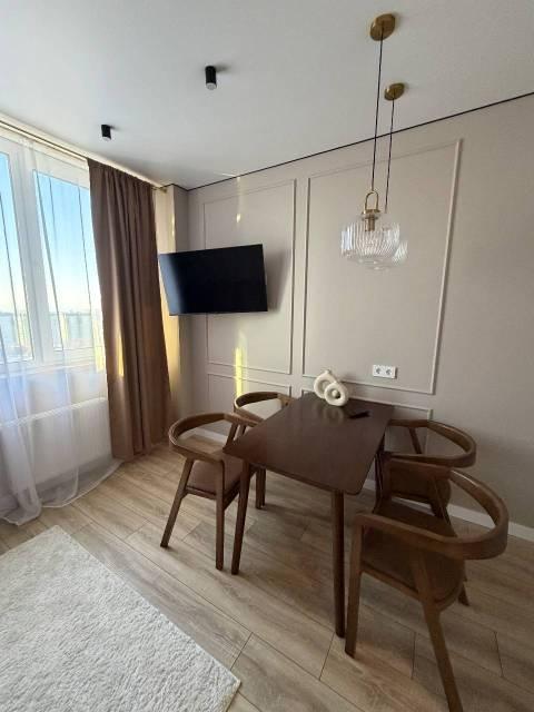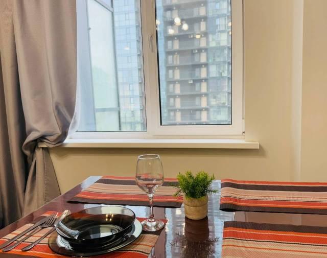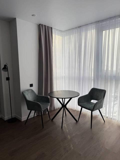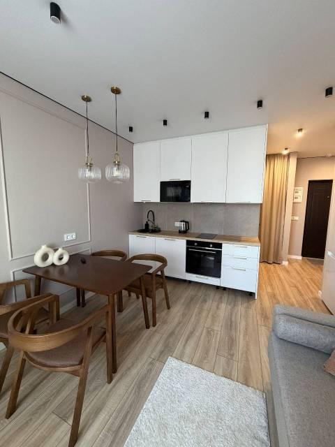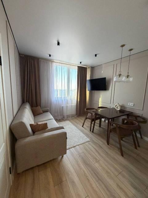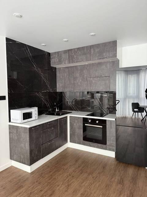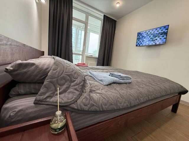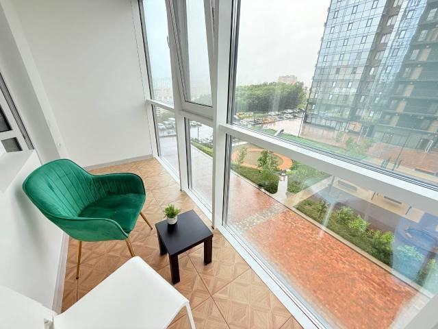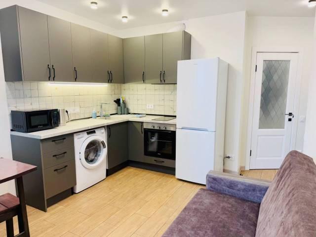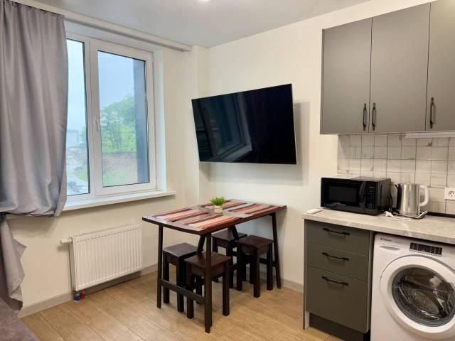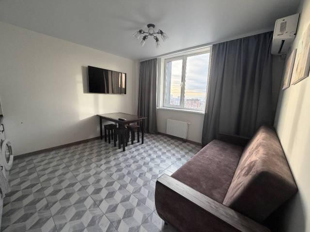 Особенности: Сдается современная дизайнерская квартира-студия! Светлая, просторная квартира с новым ремонтом и с великолепным панорамным видом из окна! Район с развитой инфраструктурой. Возле дома расположена большая детская площадка с лавочками для отдыха, прогулочной зоной, спортивной коробкой и площадкой для занятия спортом. В доме на первом этаже есть аптека Монастырев, магазин Дилан и уютное кафе со свежим кофе и пирожными.