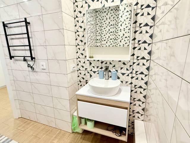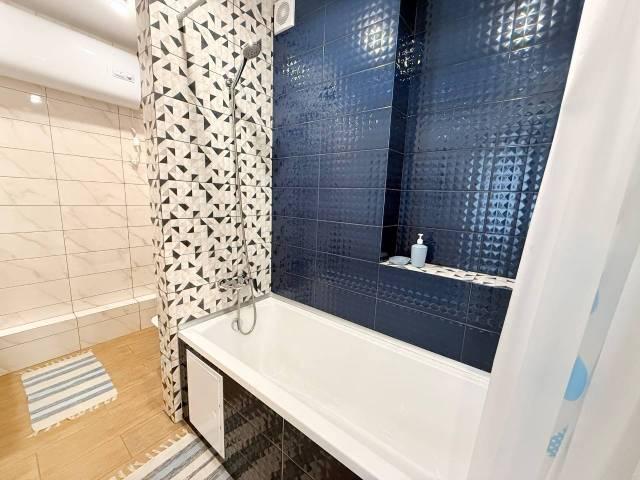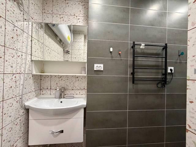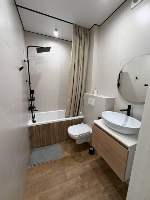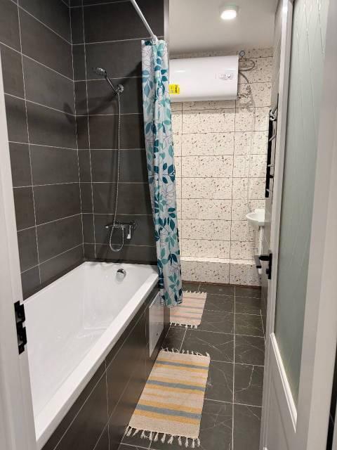 Квартира с дизайнерским ремонтом, готова к комфортному проживанию. Внутри есть вся необходимая мебель: на кухне и в комнате. Из техники кондиционер, холодильник, телевизор и стиральная машина, духовой шкаф, варочная панель, чайник, фен, утюг. Один совмещенный санузел с ванной, что очень удобно для ежедневного использования. Также имеется балкон, где можно насладиться свежим воздухом и видом на море и город.