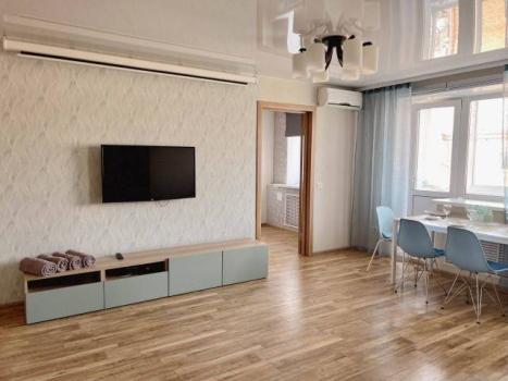 Требования: Современная комфортная 2х-комнатная квартира в центре города рассчитана на проживание до 4-х человек (большая двуспальная кровать в спальне + удобный раскладывающийся диван в зале).