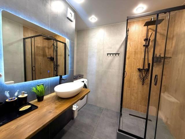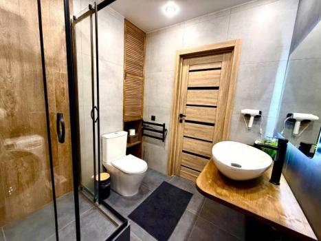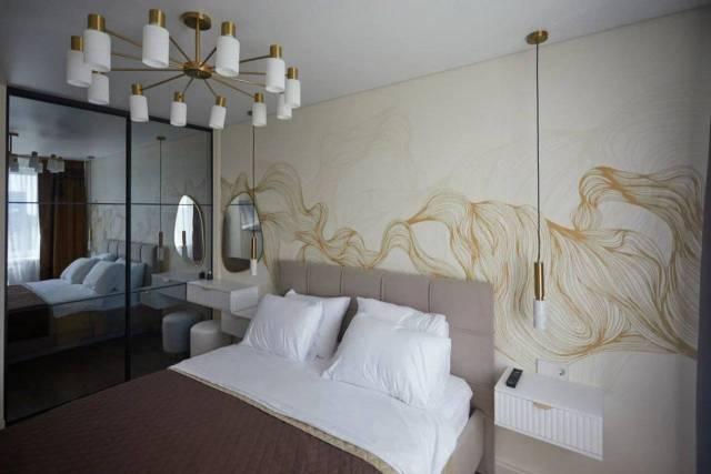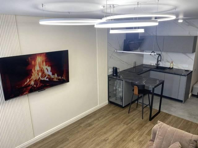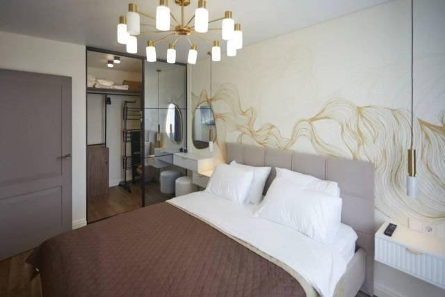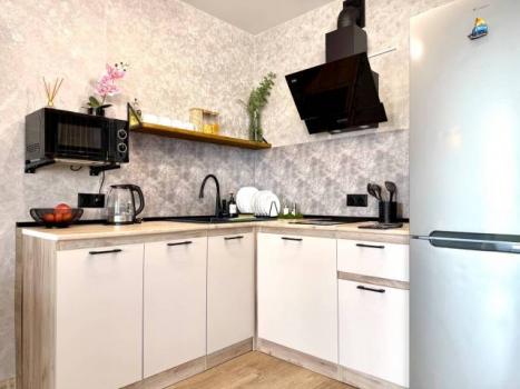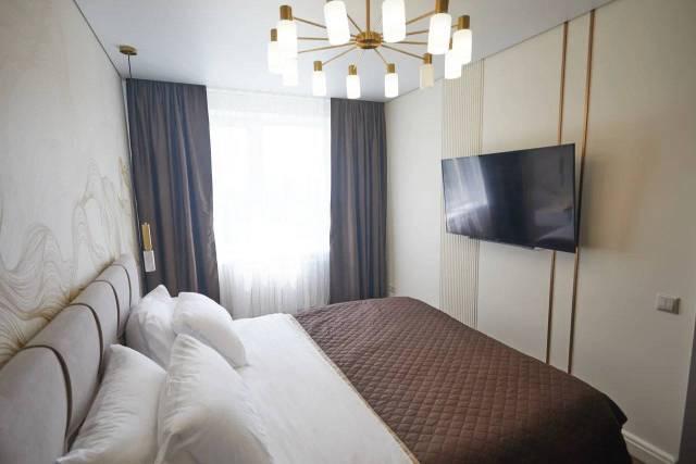 В квартире сделан дизайнерский ремонт в современном стиле, все продумано до мелочей. Совмещённая кухня-гостиная с большим раскладным диваном. Спальня, с большой двуспальной кроватью (160х200) и высоким ортопедическим матрасом, гардеробная, бытовая техника (стиральная машина, духовой шкаф, титан на 80 литров, чайник, кондиционер, 2 телевизора микроволновая печь, духовой шкаф, посудомоечная машина, встроенный холодильник , варочная панель на 4 комфорки, встроенная вытяжка) высокоскоростной беспроводной интернет, кабельное тв. Тёплый пол санузле.