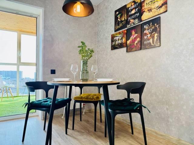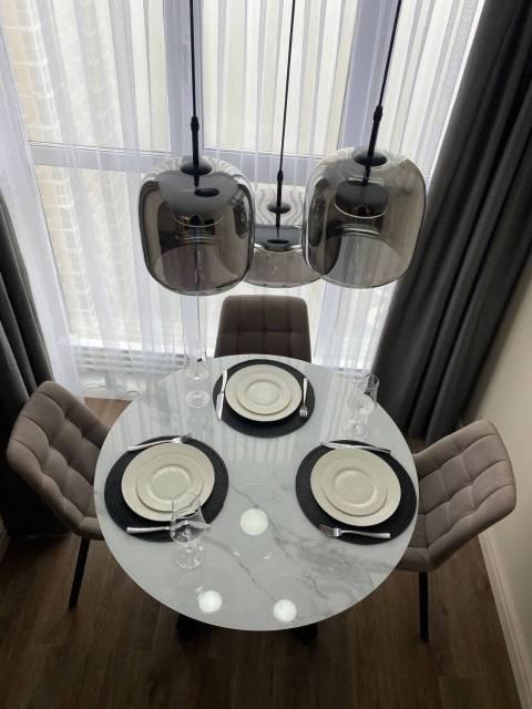 Стильная и очень уютная новая квартира. Полностью укомплектована для проживания. На балконе установлен теплый пол. Установлены датчики дыма и противопожарной безопасности. Курение в квартире запрещено.