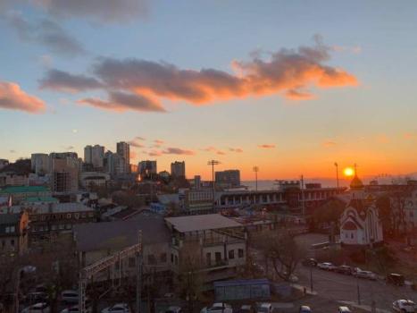 Видовая квартира - студия в центре Владивостока. Шаговая доступность главной автотранспортной развязки (5 минут пешком). Главная набережная города, колесо обозрения, крупные тц, кинотеатры, кафе, рестораны, стадион Динамо, городское управление ГИБДД, главная городская плошадь, в пятиминутной доступности. В 10 минутах ходьбы жд вокзал и центральный городской причал.