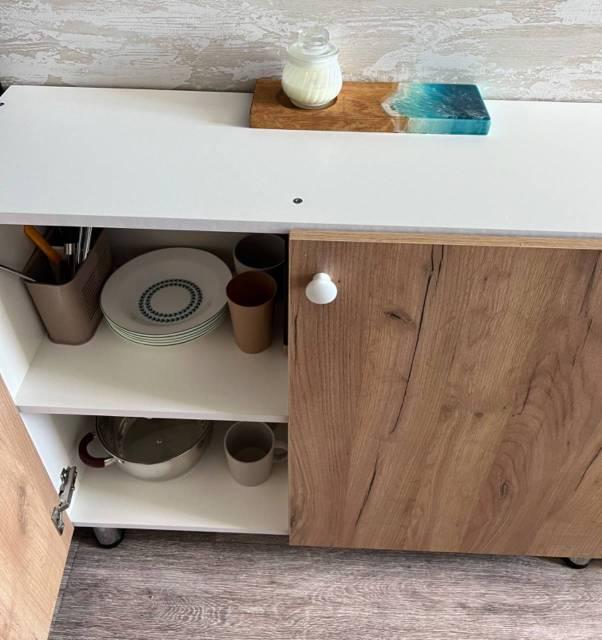Мебель: Двуспальная кровать, Обеденный стол, Кухонный гарнитур, Шкаф