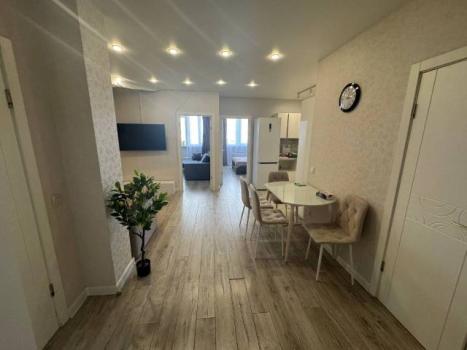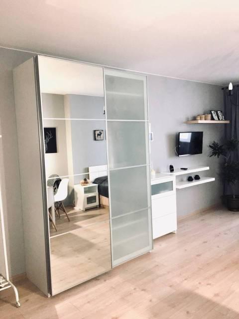 Требования: 2х-комнатная квартира-студия с отдельной спальней. С общего балкона открывается красивый вид на город. Комфортное размещение до 4х взрослых человек, возможны дополнительные спальные места (раскладушка). Полностью обустроенная кухня (встроенные электрическая варочная панель и духовой шкаф, вытяжка, 2х камерный холодильник, микроволновая печь, чайник, стиральная машина, вентилятор, столовые приборы и посуда на 4 персоны). Имеются гладильная доска, сушка для белья. В обеих комнатах установлены телевизоры, wi-fi, интерактивное и кабельное телевидение ( ОККо,Wink,KION в подарок для просмотра ) В ванной комнате установлен объемный титан. Отдельная гардеробная, плечики для одежды. Дом одноподьездный, консьерж.