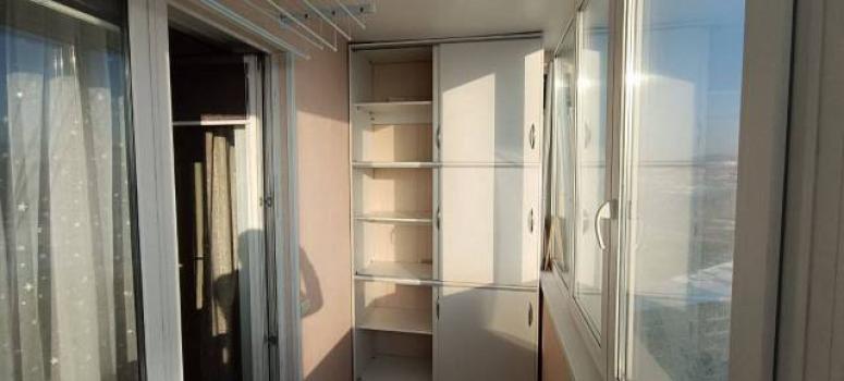 Лоджия застеклена со встроенным шкафом, Натяжной потолок