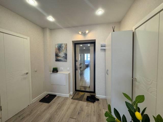Особенности: По факту 56 кв. м. Железная дверь, Ламинат, Межкомнатные двери, Натяжной потолок, Пластиковые окна, Софиты, Стены выровнены, Тёплый пол