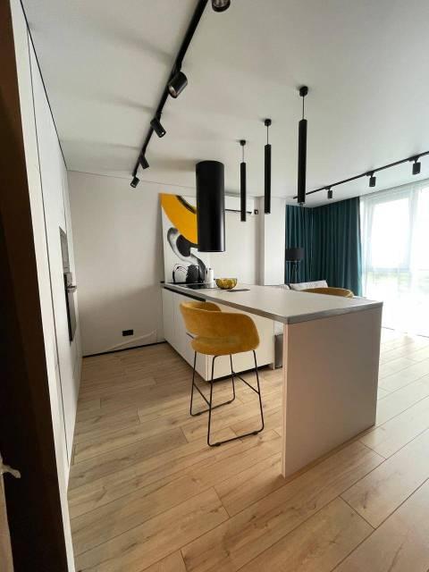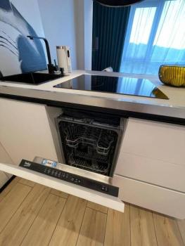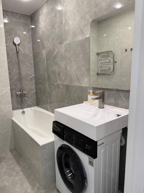 В квартире изолированные комнаты, современный ремонт. Просторная кухня с островом, оснащена всей необходимой техникой: холодильник, варочная панель, духовой шкаф, посудомоечная машина, стиральной и сушильной машиной.