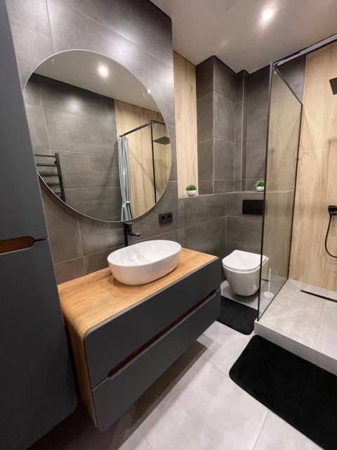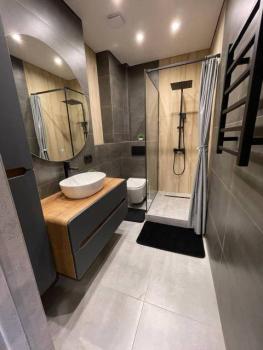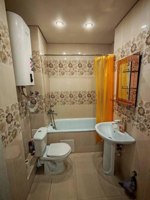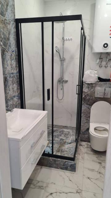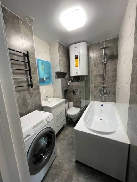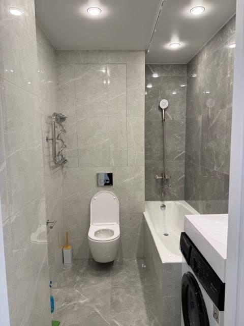 Санузел совмещенный, выполнен в современном стиле с качественной сантехникой и душевой кабиной. В квартире есть гардеробная и шкафы для хранения вещей.