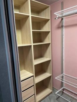 Особенности: Гардеробная с навесной системой хранения, Ламинат, Натяжной потолок, Пластиковые окна, Софиты