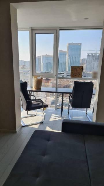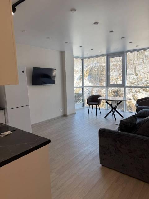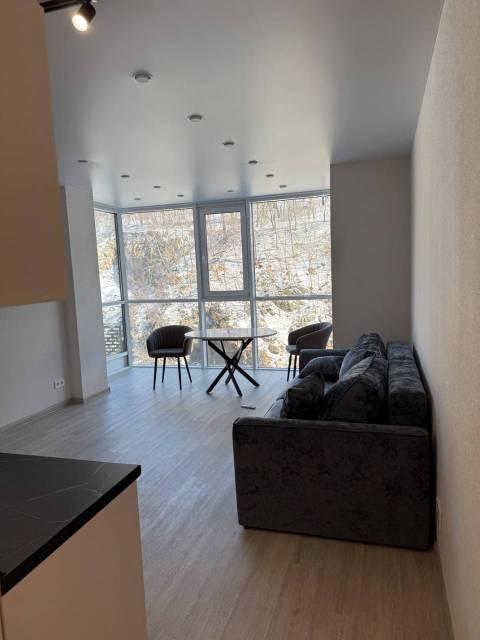 Ремонт полностью сделан. Кухни нет. Панорамный стеклянный вид.