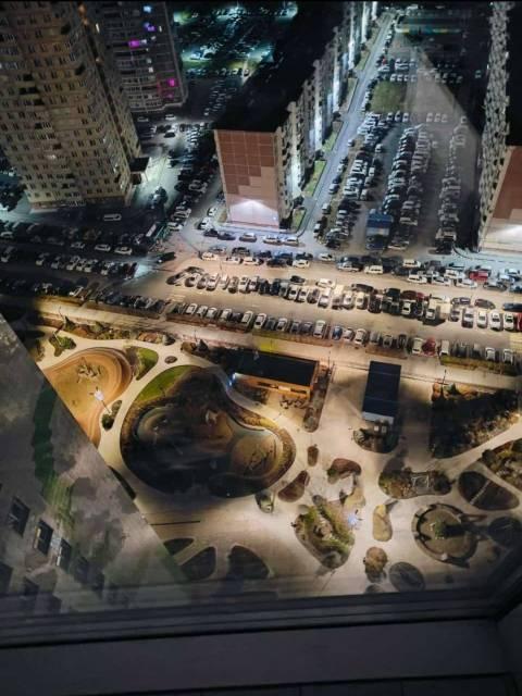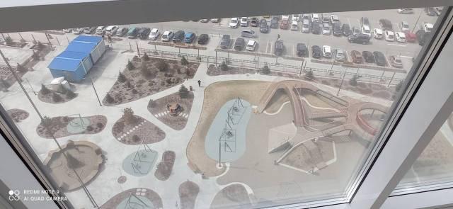 Территория у дома полностью под охраной и видеонаблюдением, на территории множество площадок, сухой фонтан. Вид из окна во двор.