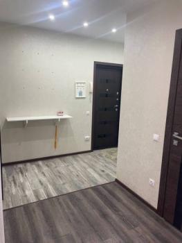 Особенности: Гардеробная, Железная дверь, Ламинат, Натяжной потолок, Паркет, Пластиковые окна, Софиты, Стены выровнены, Тёплый пол