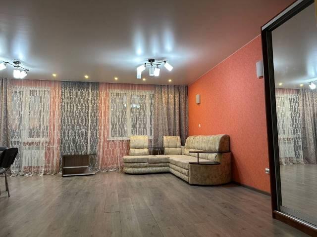 Особенности: Квартира чистая, проведена комплексная генеральная уборка. Имеется гардеробная комната, ковер, мягкая зона на балконе., Железная дверь, Ламинат, Межкомнатные двери, Натяжной потолок, Пластиковые окна, Софиты, Стены выровнены