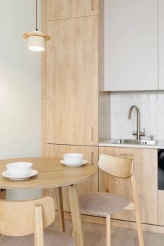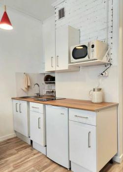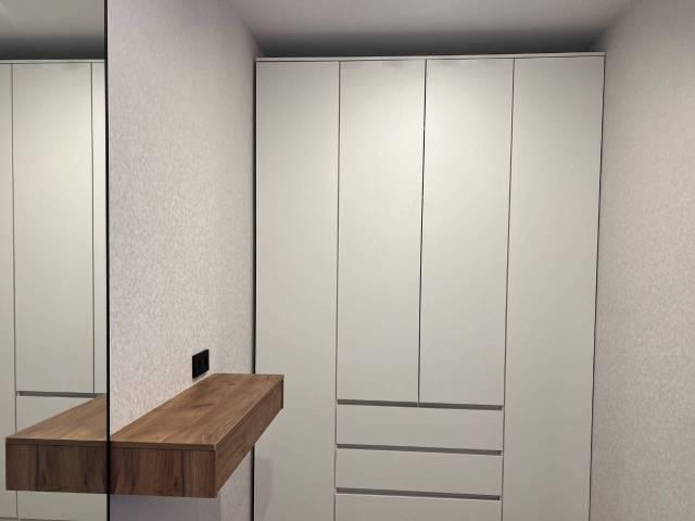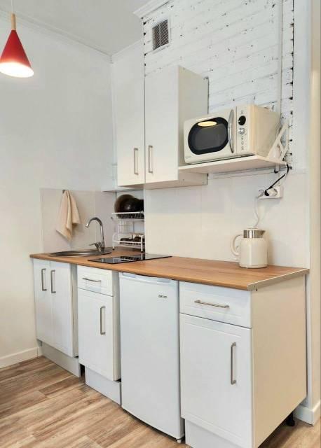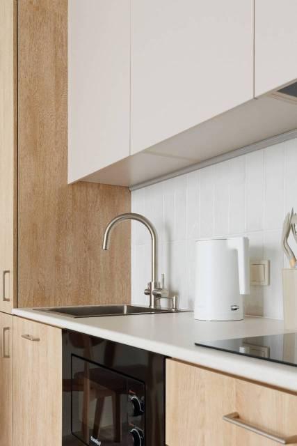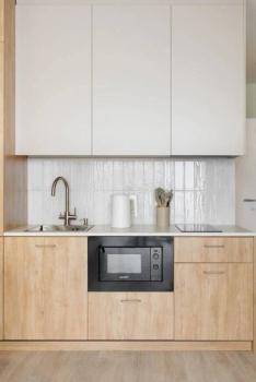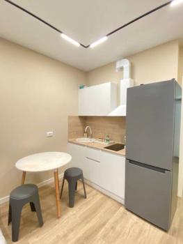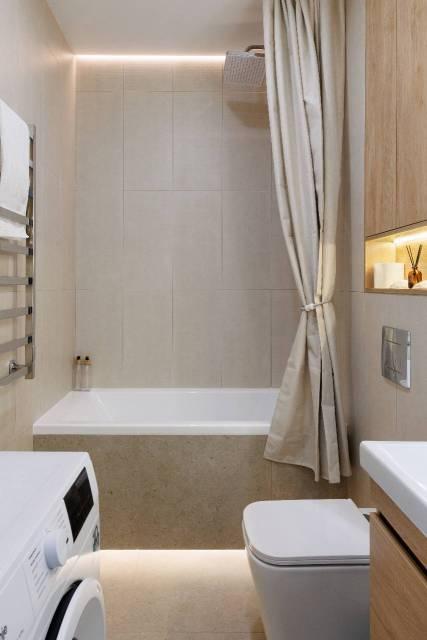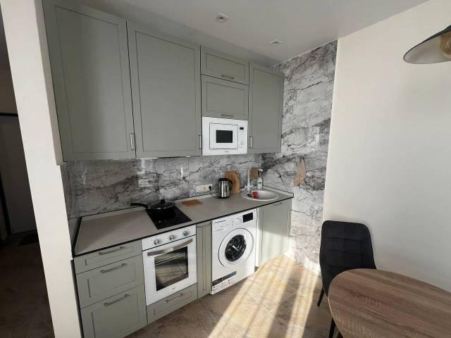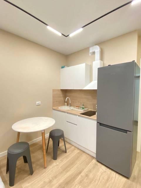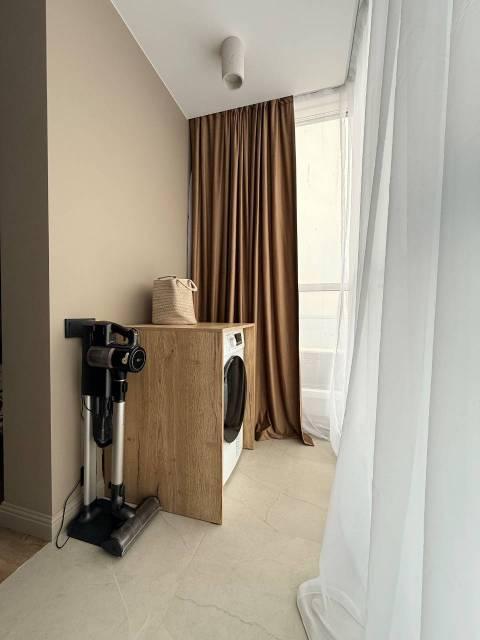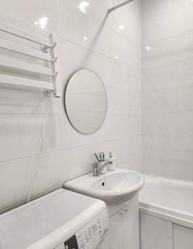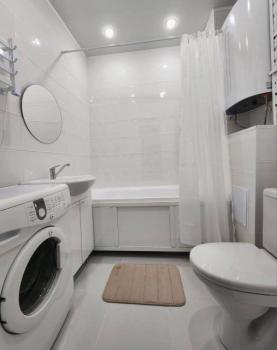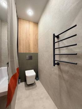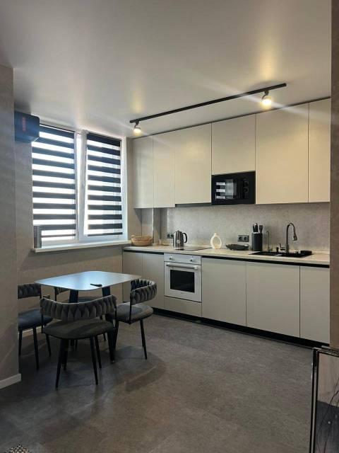Техника: Квартира оснащена всей необходимой современной бытовой техникой, в т.ч.: встроенный холодильник с морозильной камерой, стиральная машина, встроенная микроволновая печь, встроенная индукционная варочная панель (плита), встроенная вытяжка, электрический чайник, кондиционер, телевизор 55” с функцией смартТВ, большой полотенцесушитель, пылесос, утюг, фен для волос, гладильная доска, сушилка для белья, электрический конвектор