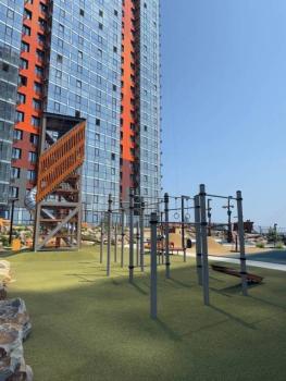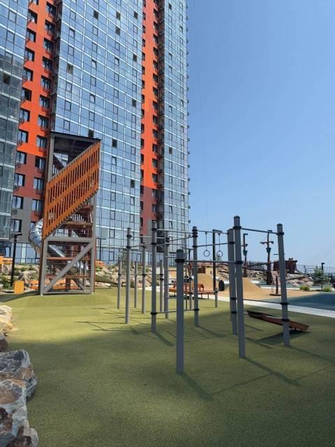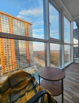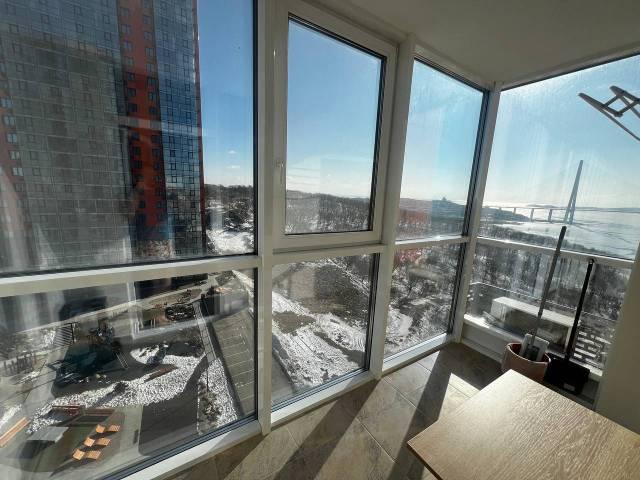 Особенности: Новый жилой комплекс на берегу моря. Современный подъезд с высокими потолками. В квартире свежий ремонт, качественные отделочные материалы: керамогранит, хороший ламинат, качественная сантехника, встроенная мебель, реечная перегородка, натяжные потолки, теплый пол, разные сценарии освещения. Большие панорамные окна на всю высоту квартиры и завораживающие виды слева - на Русский мост, спереди - на Токаревский маяк, справа - на Золотой мост. За счет утепления балкона жилая площадь 28,5 квм