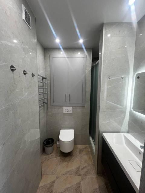 Особенности: Железная дверь, Натяжной потолок, Пластиковые окна, Софиты, Стены выровнены, Тёплый пол, Керамогранит.