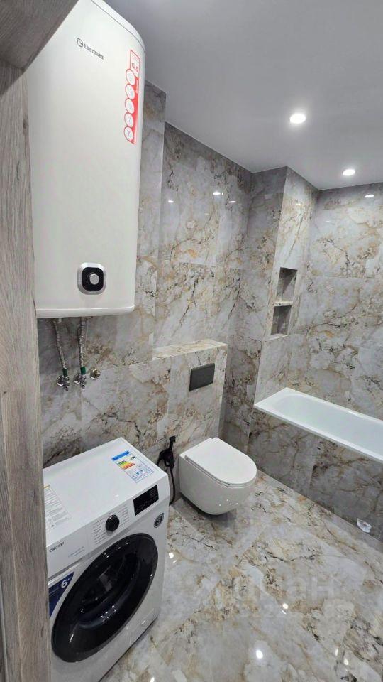 В квартире сделан современный дизайнерский ремонт, она полностью меблирована — мебель есть как на кухне, так и в комнатах. Из техники предусмотрены кондиционер, холодильник и стиральная машина, поэтому можно сразу заехать и жить с комфортом. В санузле установлена ванна, а также имеется лоджия 10 кв.м, с тёплым полом, где можно обустроить зону для отдыха, фитнеса либо личный кабинет.