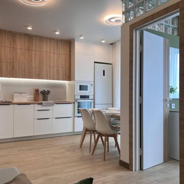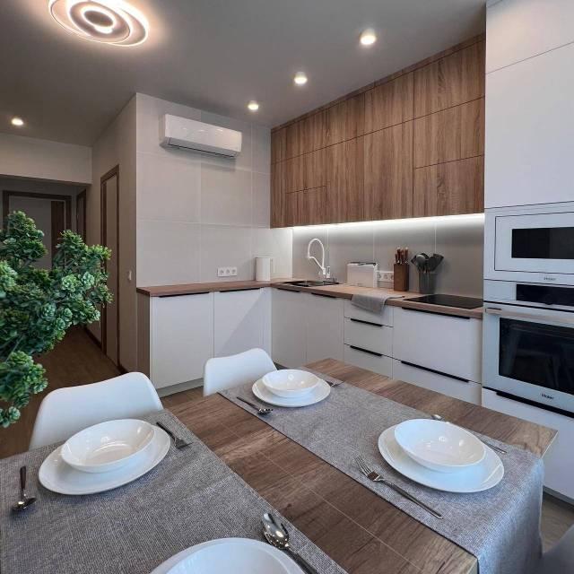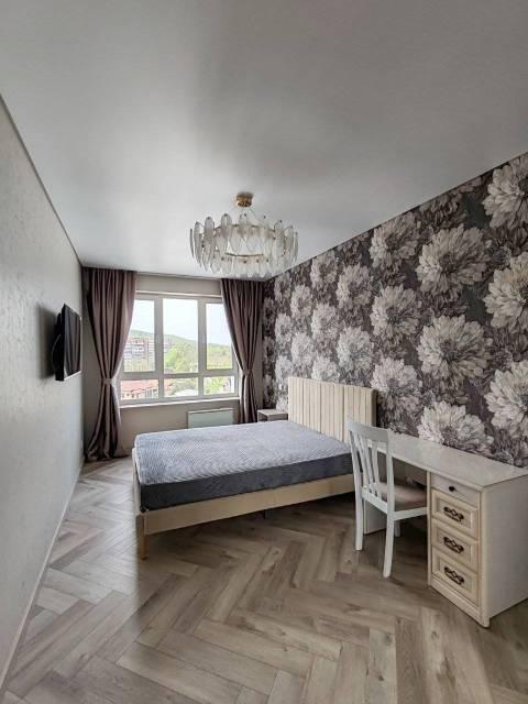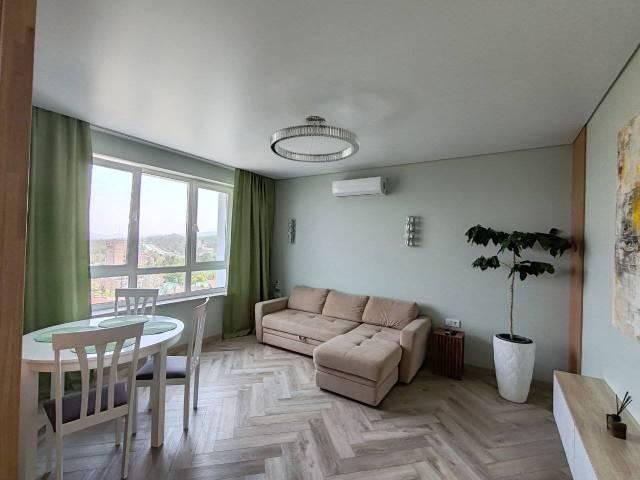 Особенности: Гардеробная, Натяжной потолок, Межкомнатные двери, Пластиковые окна, Кварцвиниловые полы, Стены выровнены, Утеплённая лоджия с видом на море