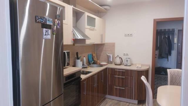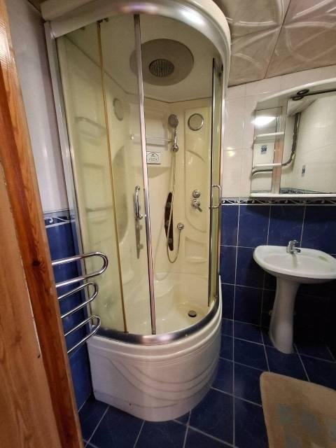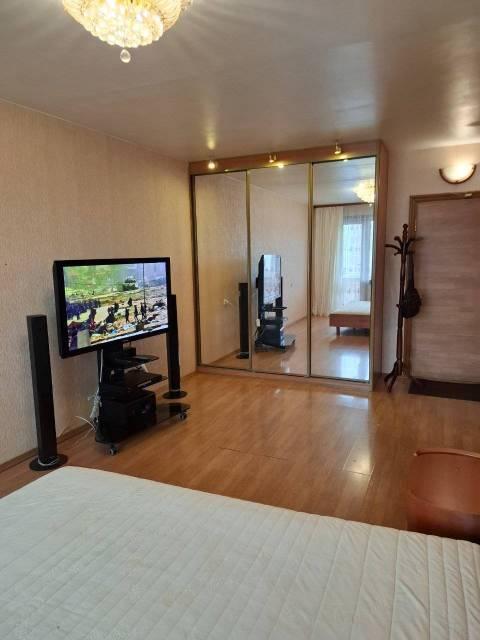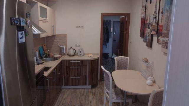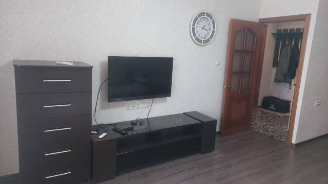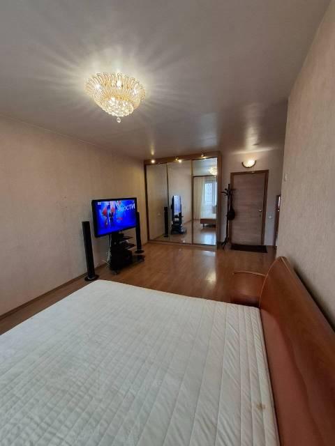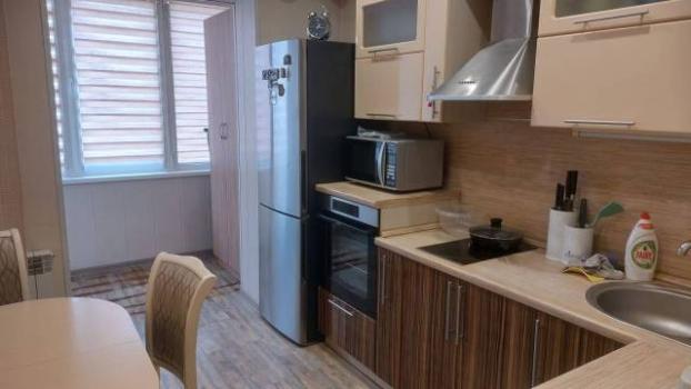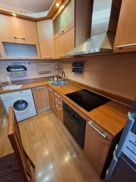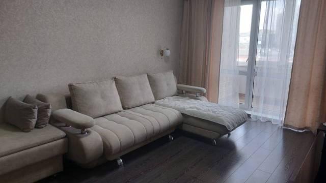 Особенности: Квартира очень тёплая, огорожена железной дверью на две квартиры. Лоджия утепленная на всю квартиру. Качественная мебель, кухонный гарнитур и обеденный стол с стульями. Варочная панель, духовой шкаф и холодильник фирмы Bosch. Телевизор и домашний кинотеатр с качественным звуком. В ванной комнате душевая кабина, в туалете стоит электротитан. Окна пластиковые отделанны под дерево.
