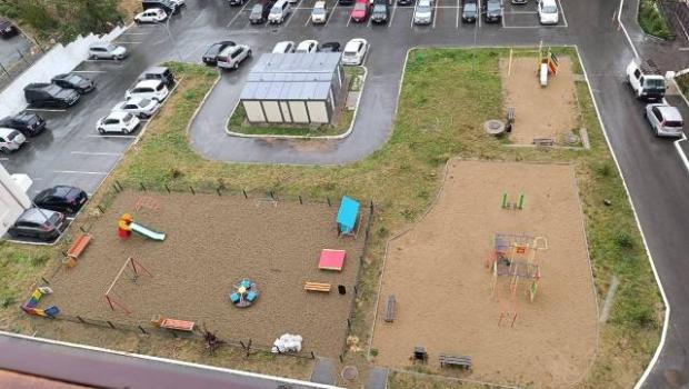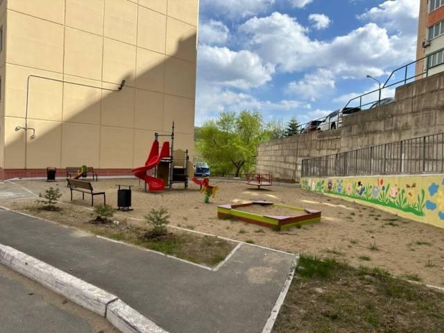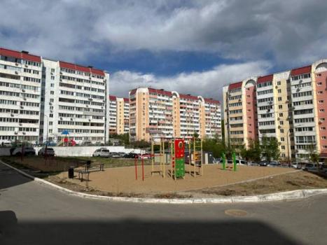 Огороженная территория с огромной бесплатной парковкой и видеонаблюдением, на въезде установлен шлагбаум. Много детских площадок. Удобное расположение, рядом автобусная остановка, магазины, рынок, ресторан "Супра".