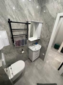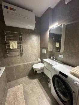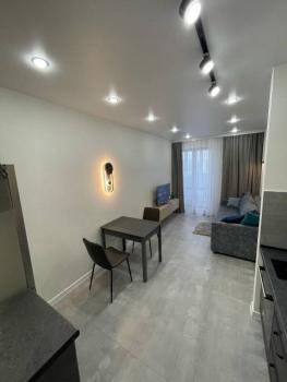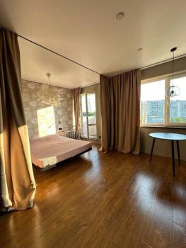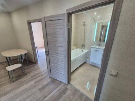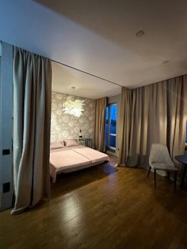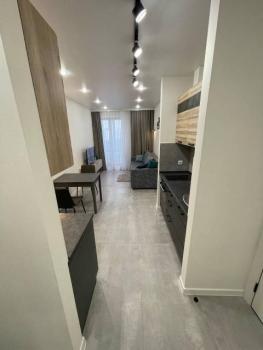 Однокомнатная квартира, зона спальни отделена. В квартире выполнен современный функциональный ремонт, имеется достаточно мест для хранения, квартира обустроена для комфортного проживания: есть посудомойка, встроенный холодильник, титан, кондиционер. Есть все необходимые предметы первой необходимости, посуда, постельное белье.