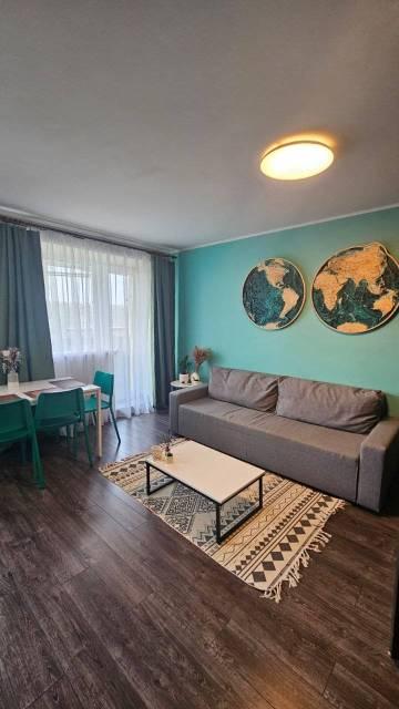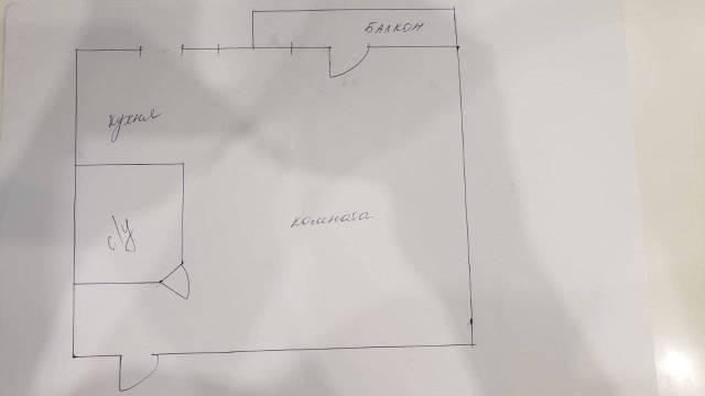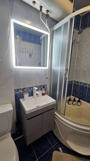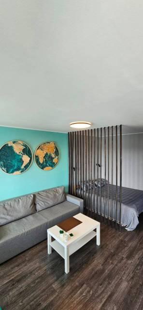 Однокомнатная квартира, диван с кроватью в одной комнате. Находится на высоком 1 этаже (уровень второго).