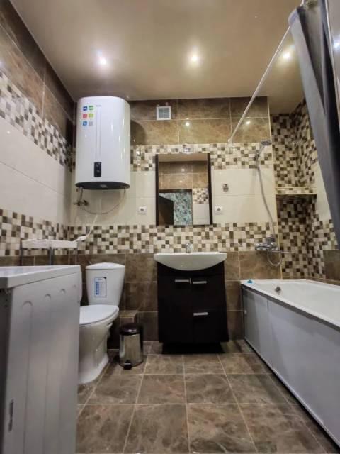 Особенности: Железная дверь, межкомнатные двери, ламинат, натяжной потолок, тёплый пол в санузле, балкон застеклен.